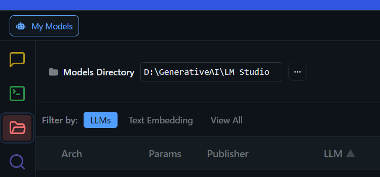 左側のメニューからMy Modelsを選択し、Models Directoryでモデルの保存先を設定する。