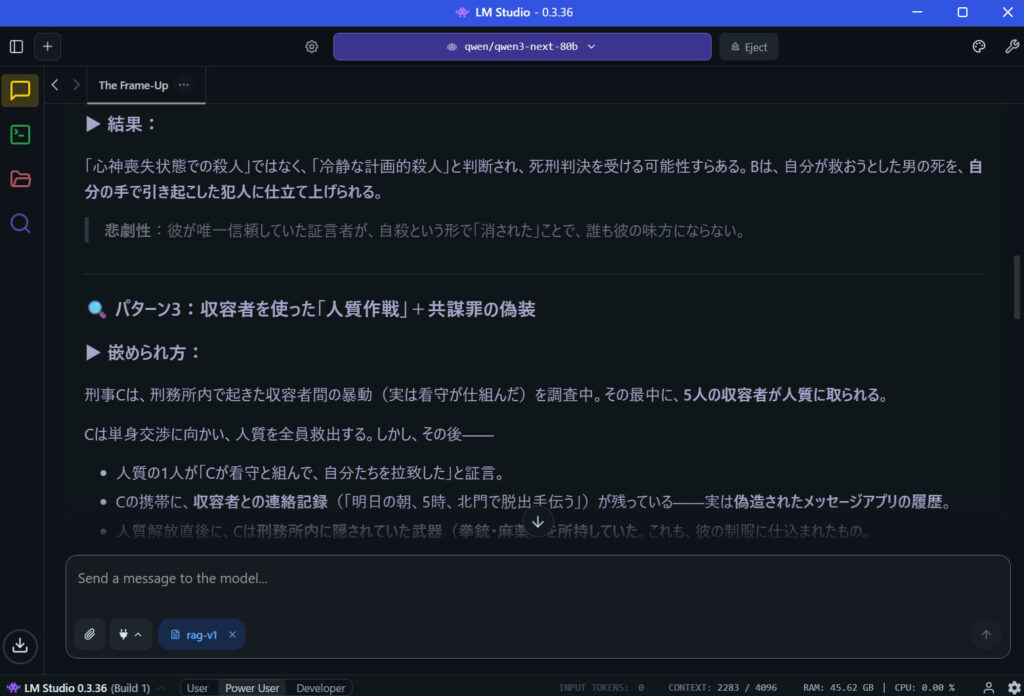登場人物やプロットだけを書いて渡すと、なかなかいいものに仕上げてくれます。まだお遊び程度にしか使ってませんが非常に可能性を感じます。Abliteratedモデルは官能小説も書いてくれました。笑