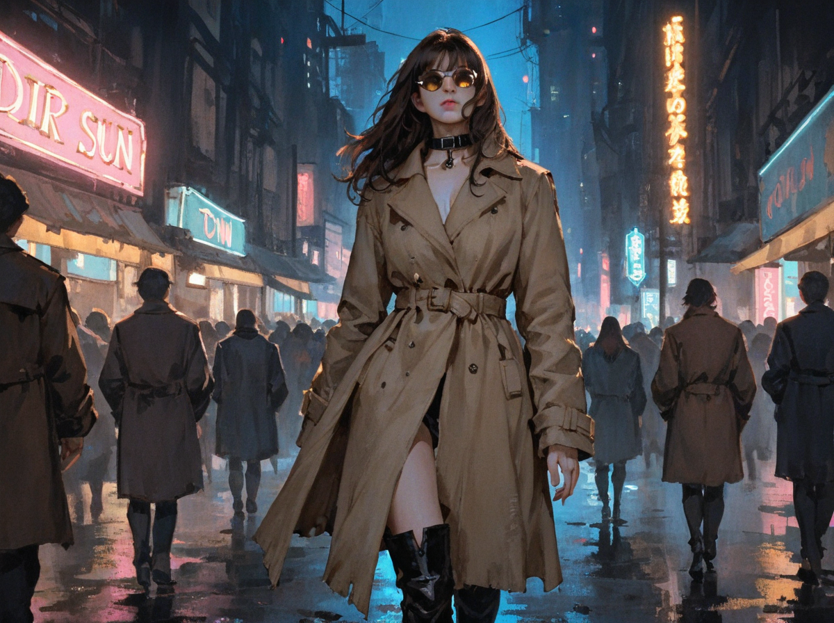 Stable Diffuionで生成した、夜の街を歩く女性。イラスト調も上手くいくだろうか。
