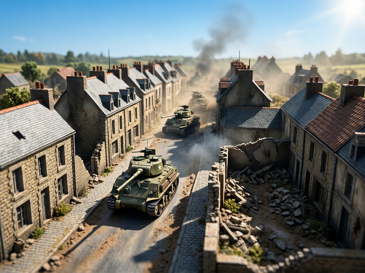 第二次世界大戦の戦車ジオラマ。Qwen-Image-2512で生成。