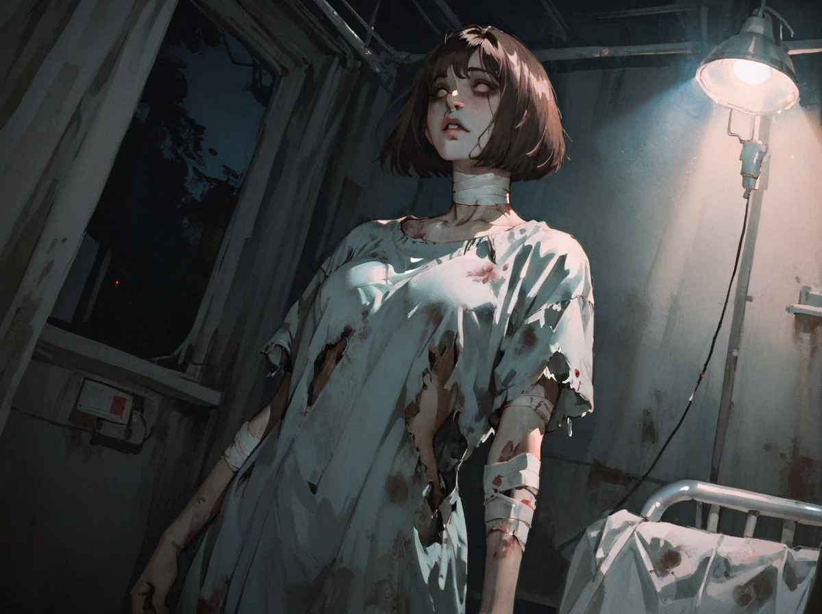 zombie, (rotting flesh:0.2), (fresh blood:0.2), torn clothes, (blank eyes:0.8),