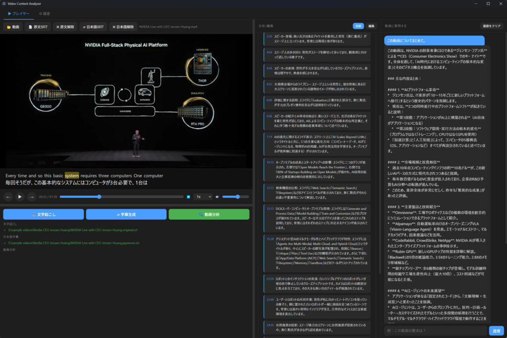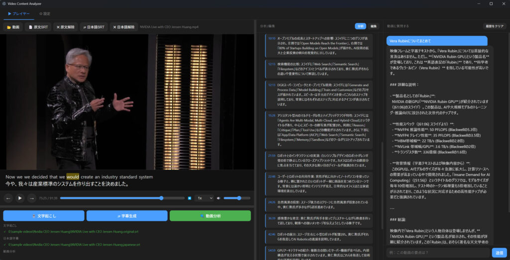 以前からやってみたかった視覚言語モデルによる動画の解析をやってみました。前日の試作を拡張したものになります。