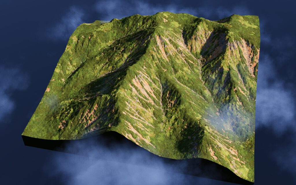 山の斜面によく見られる地すべり跡を再現してみた。地肌が見えると凄みが増しますね。